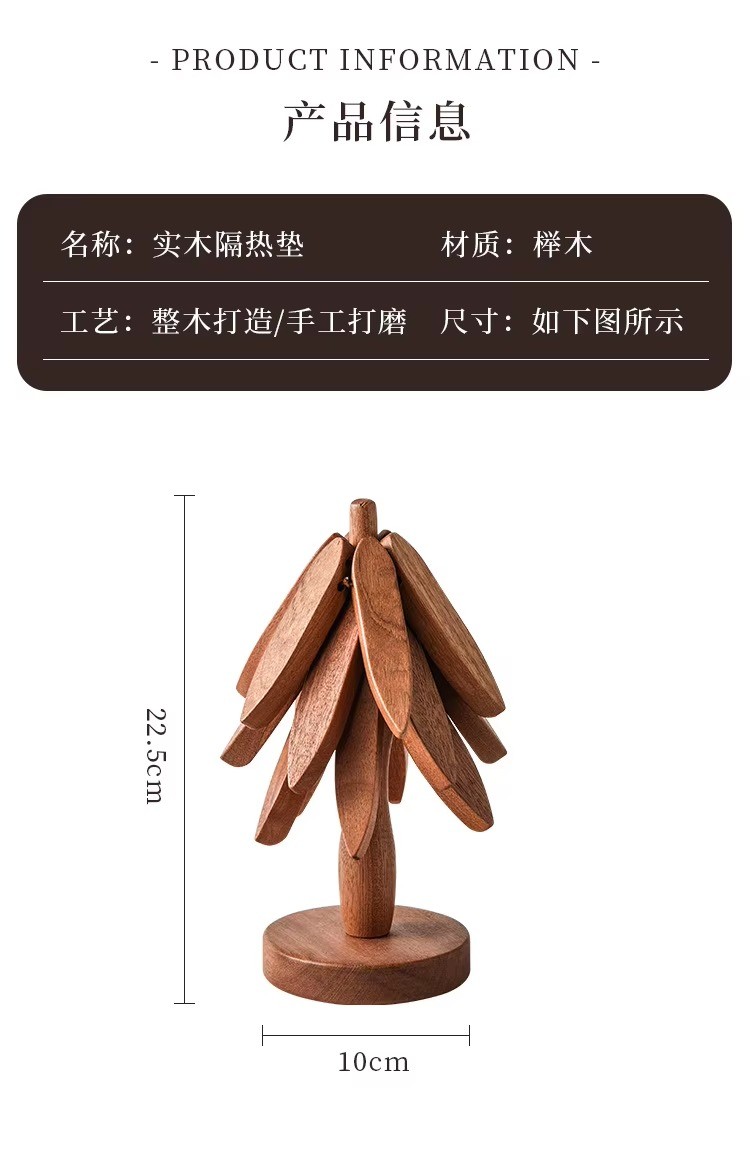 Tree Shape Walnut Wood Table Mat Set with Stand
